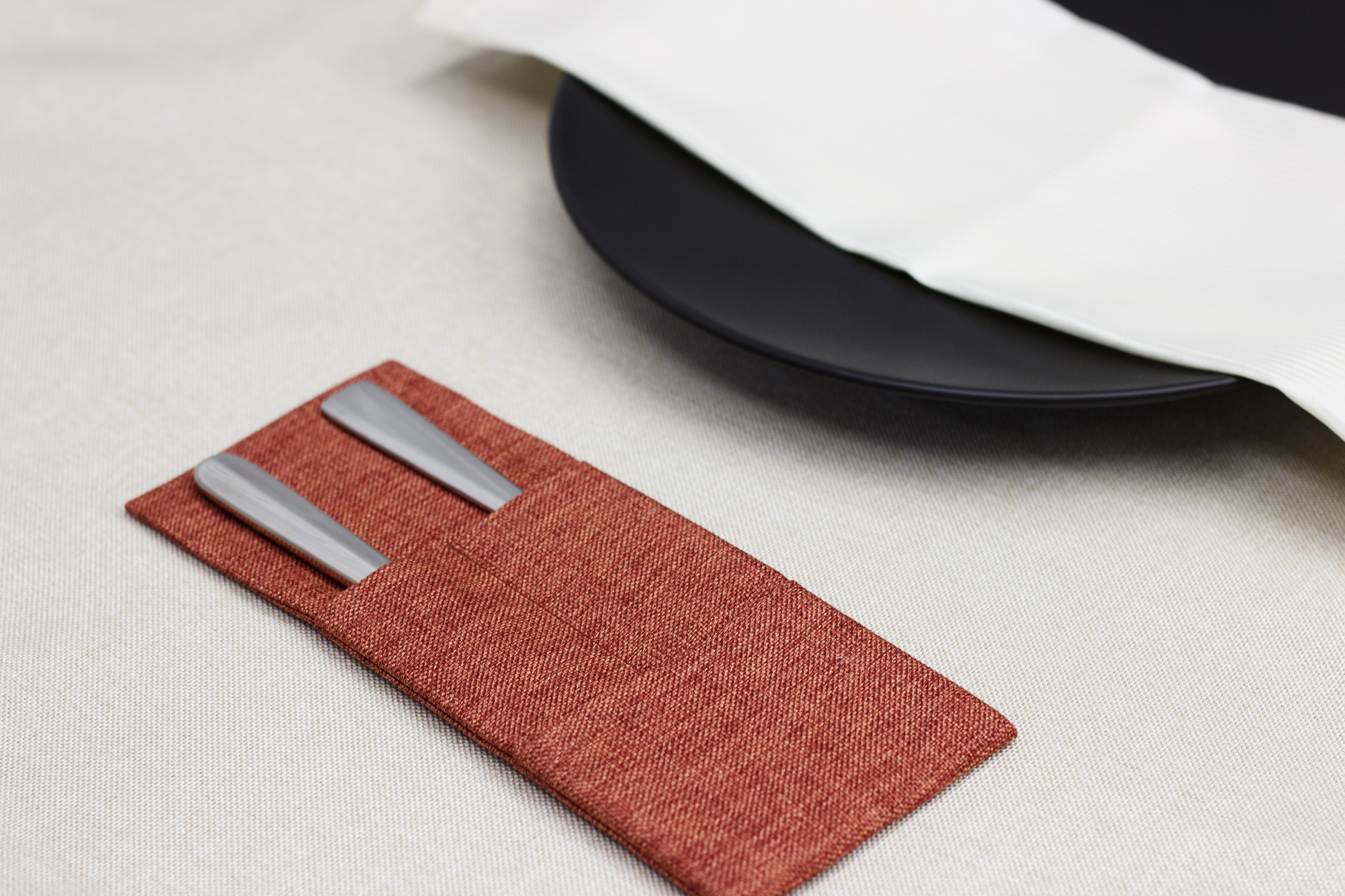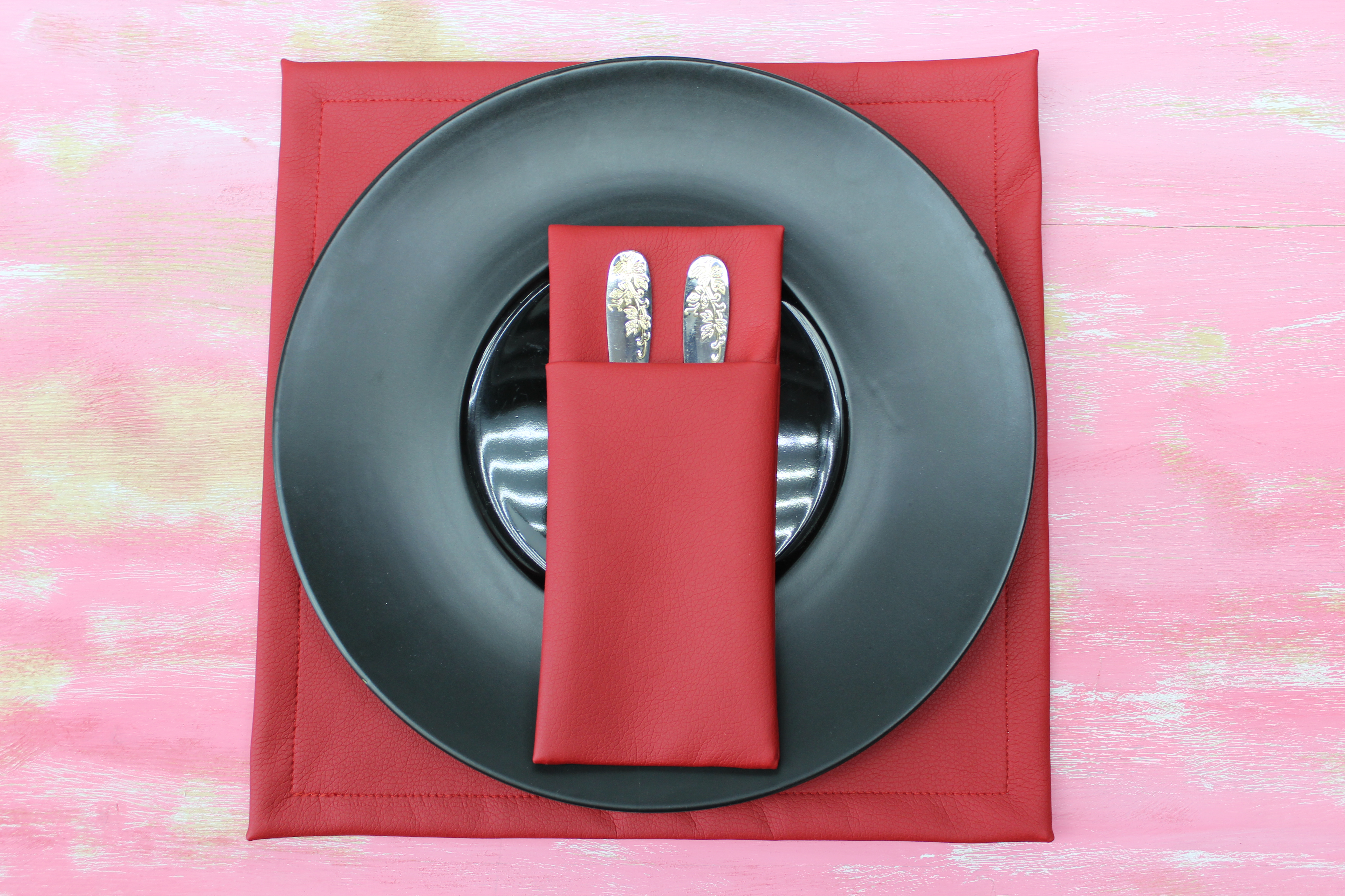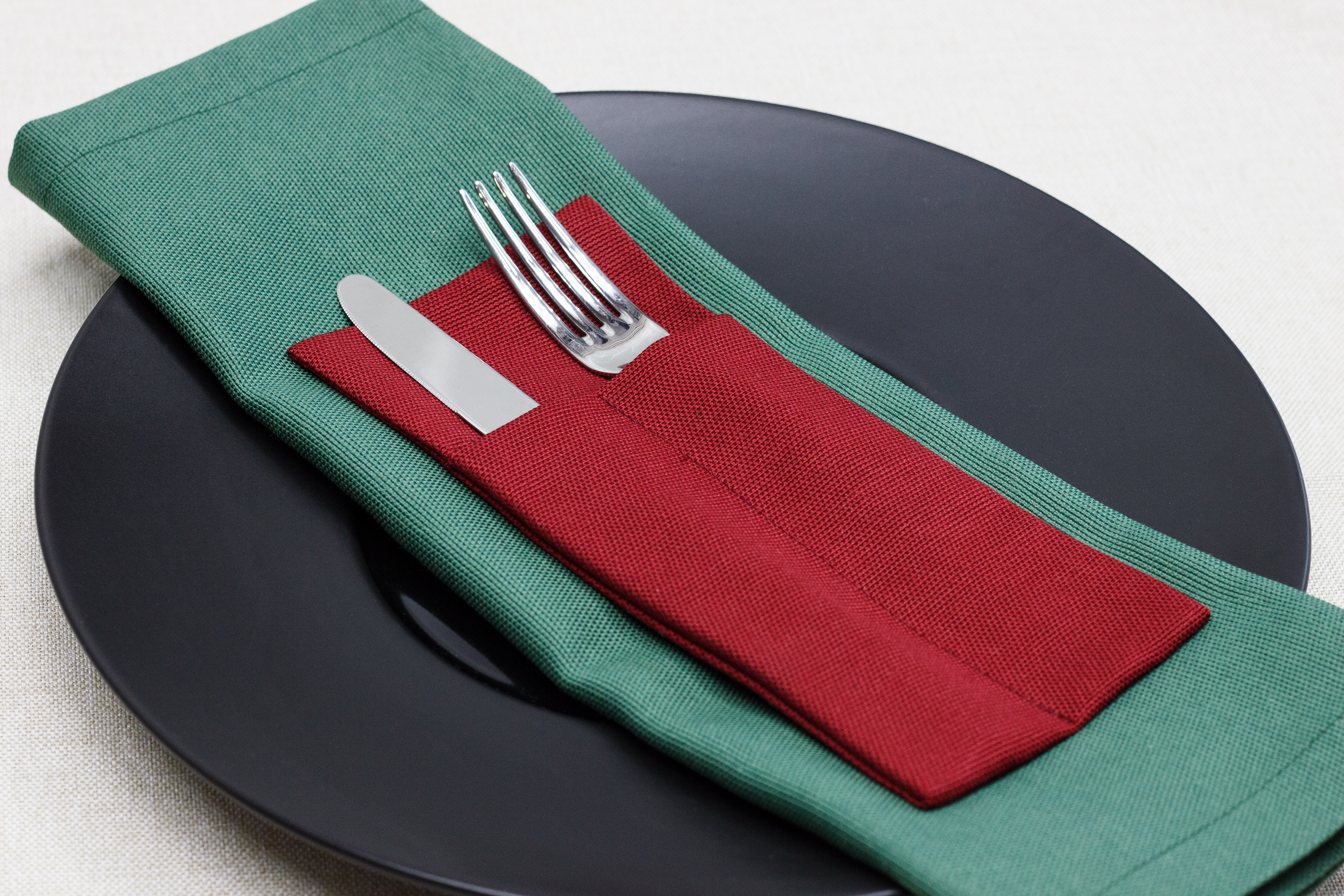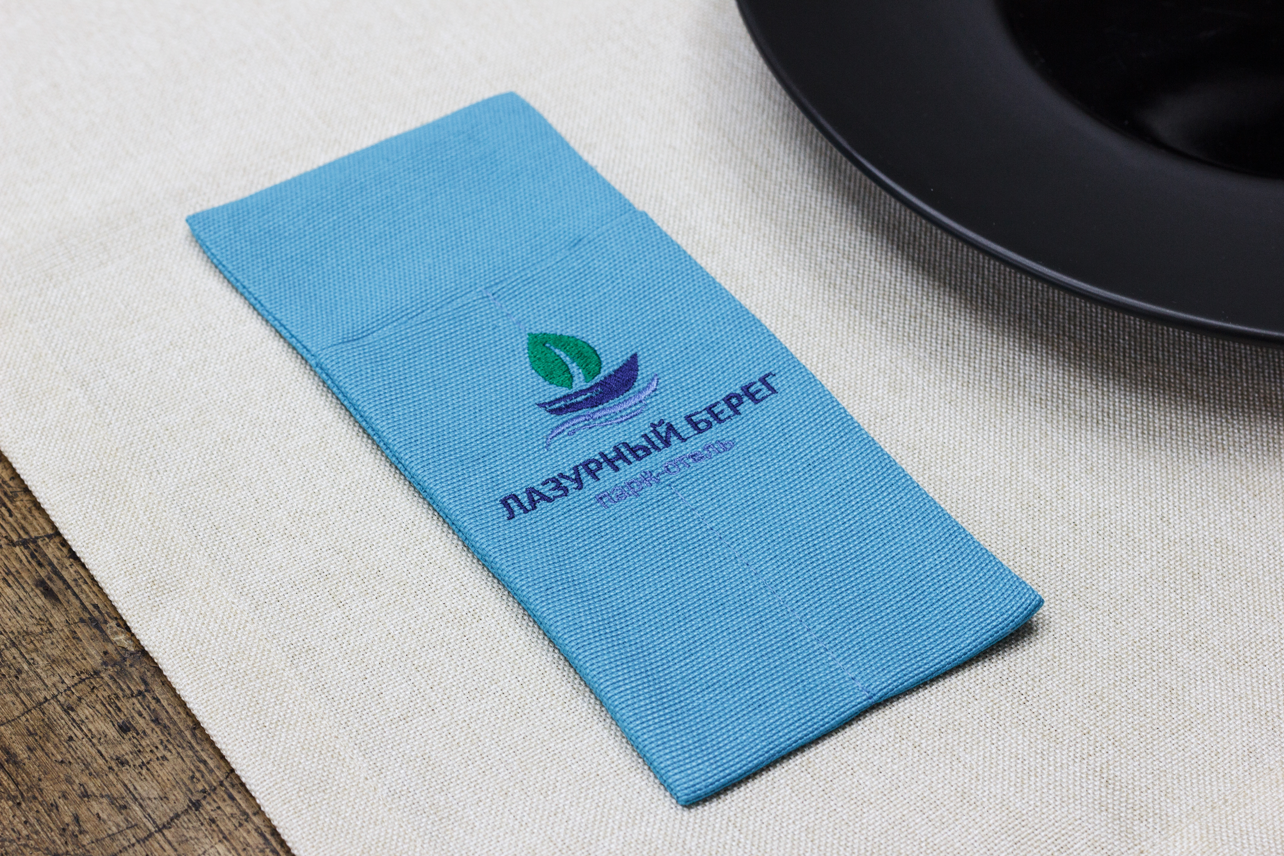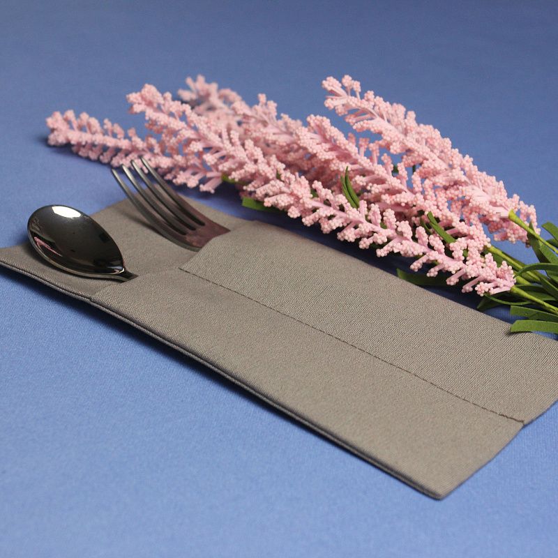 Можно изготовить из любой ткани, добавить необходимое количество карманов и подобрать размер под диаметр ваших тарелок. Вышивку возможно нанести на любом месте.