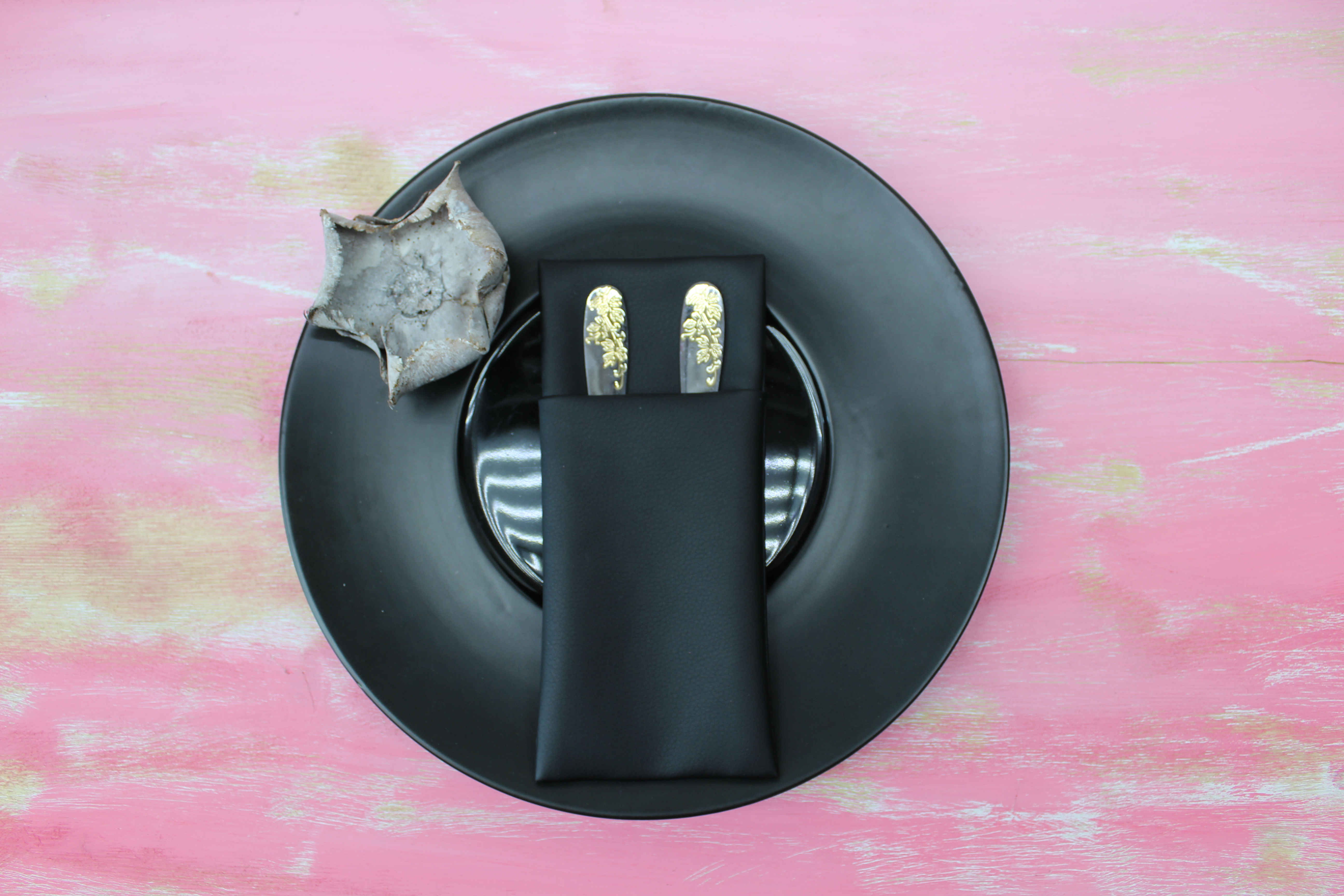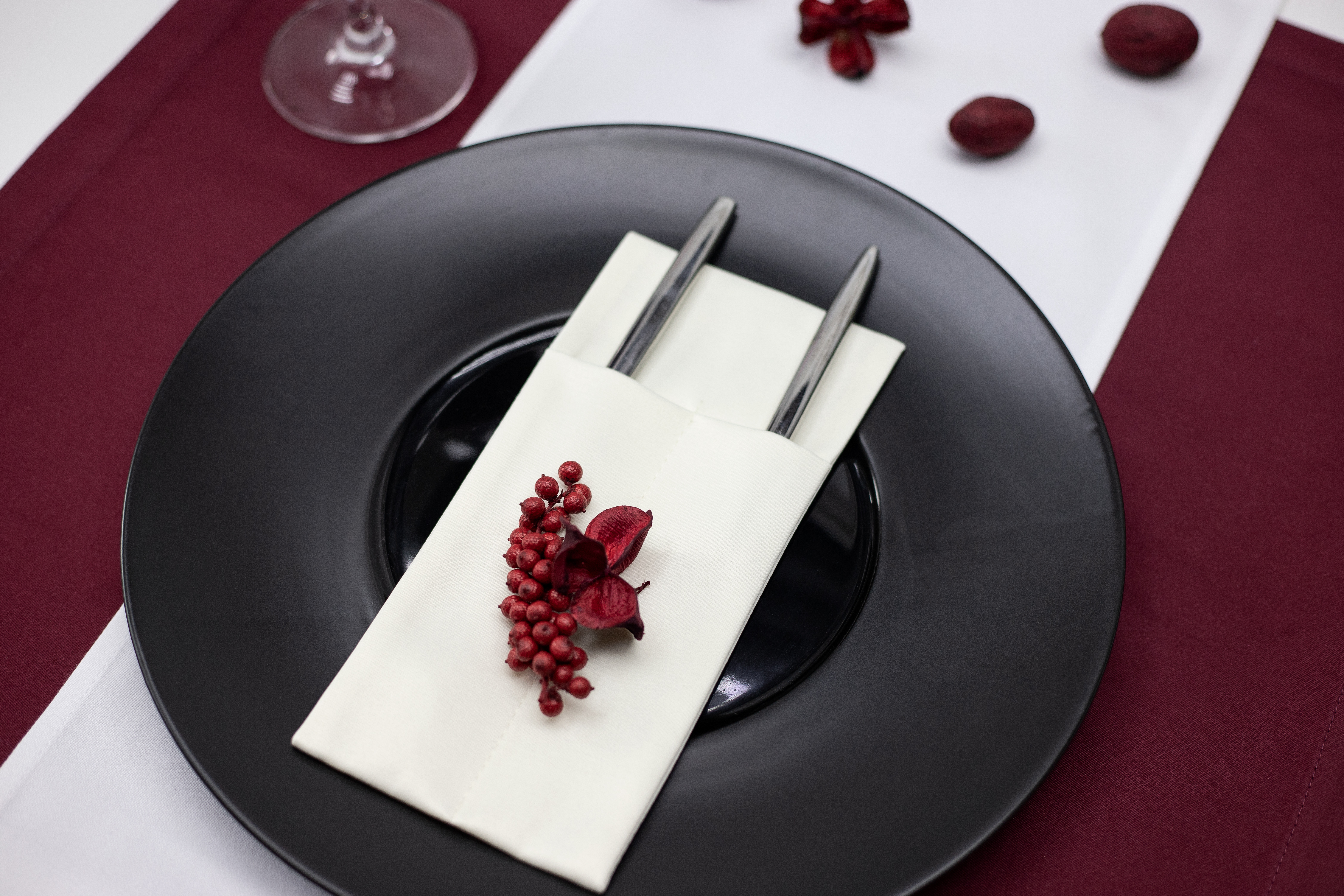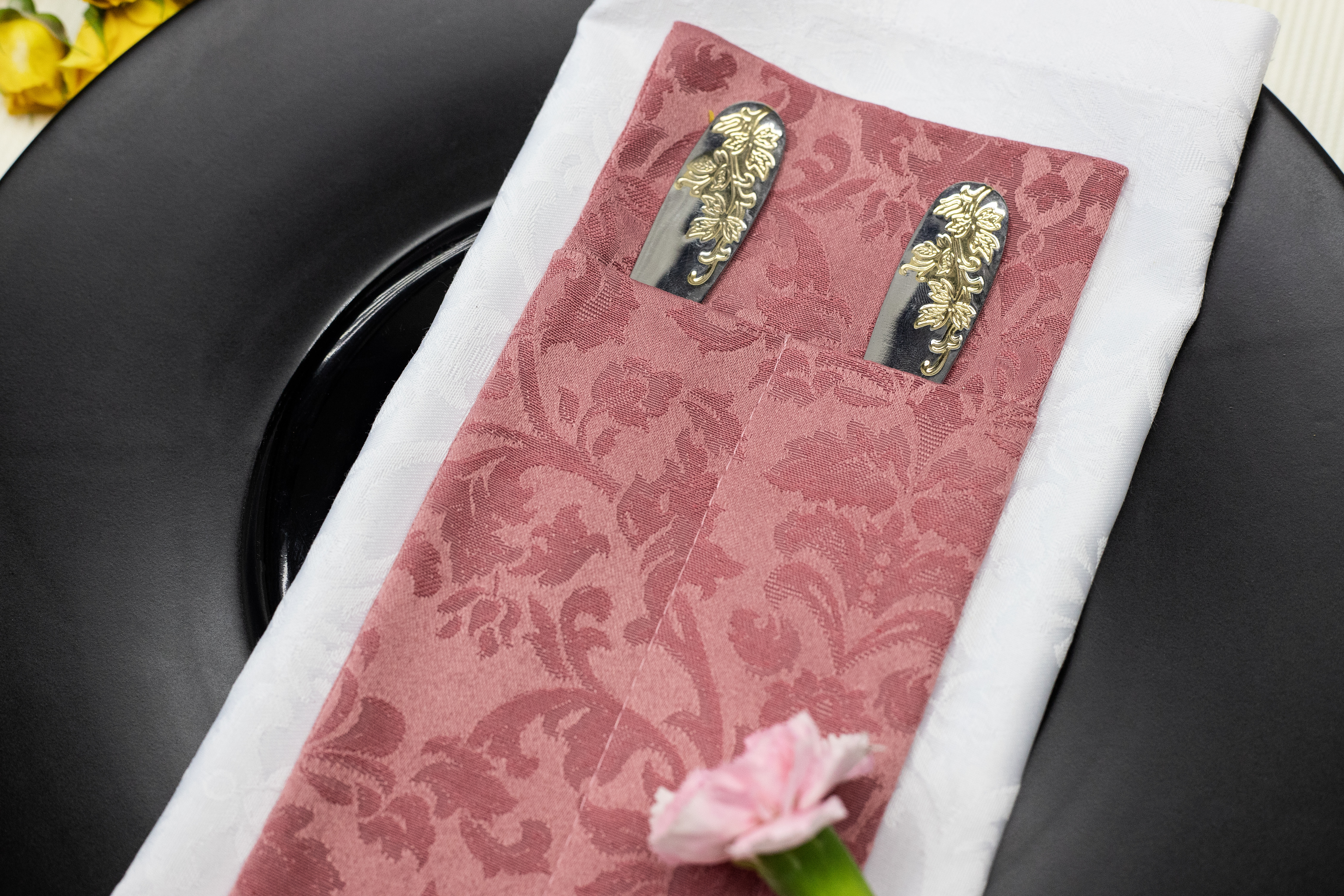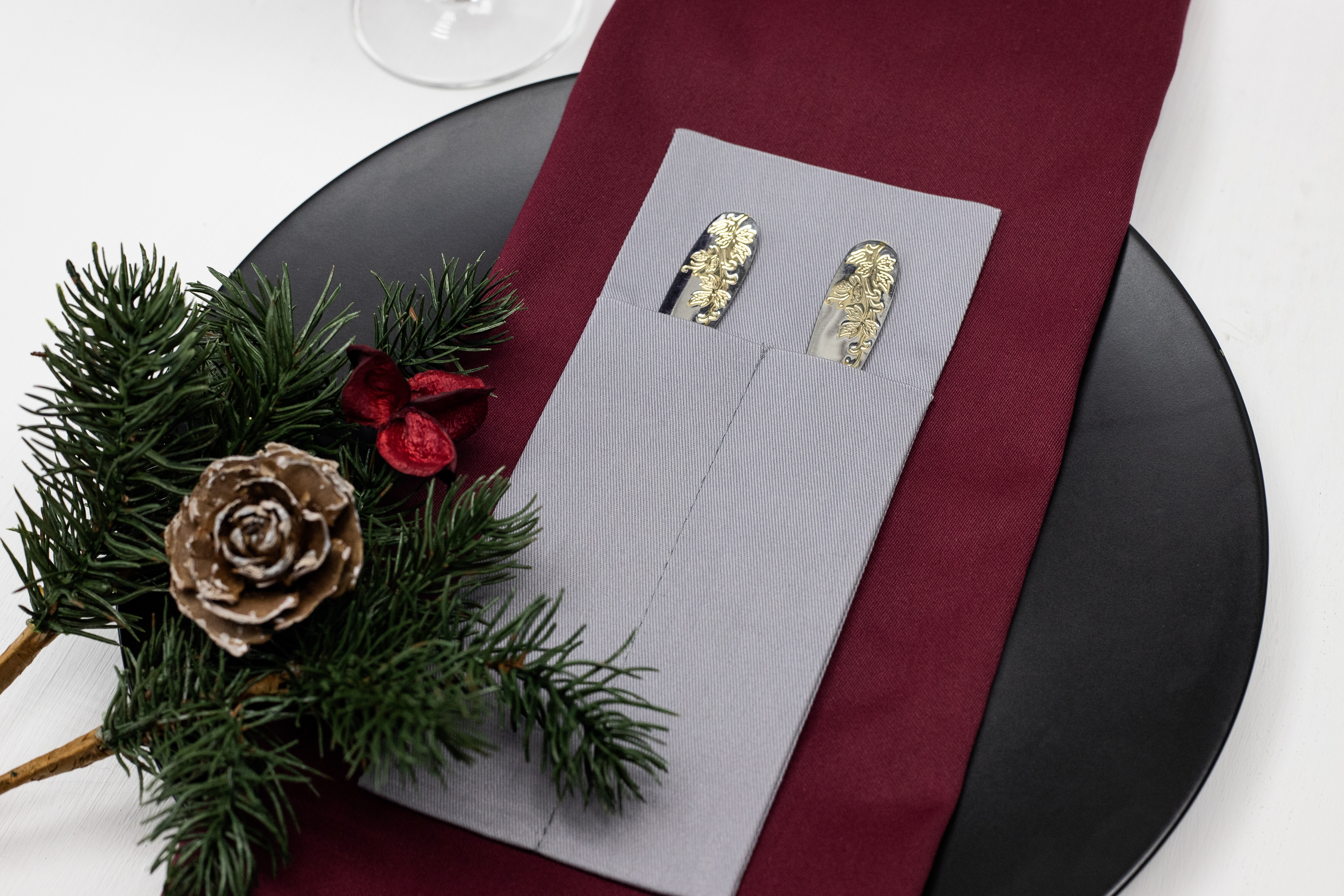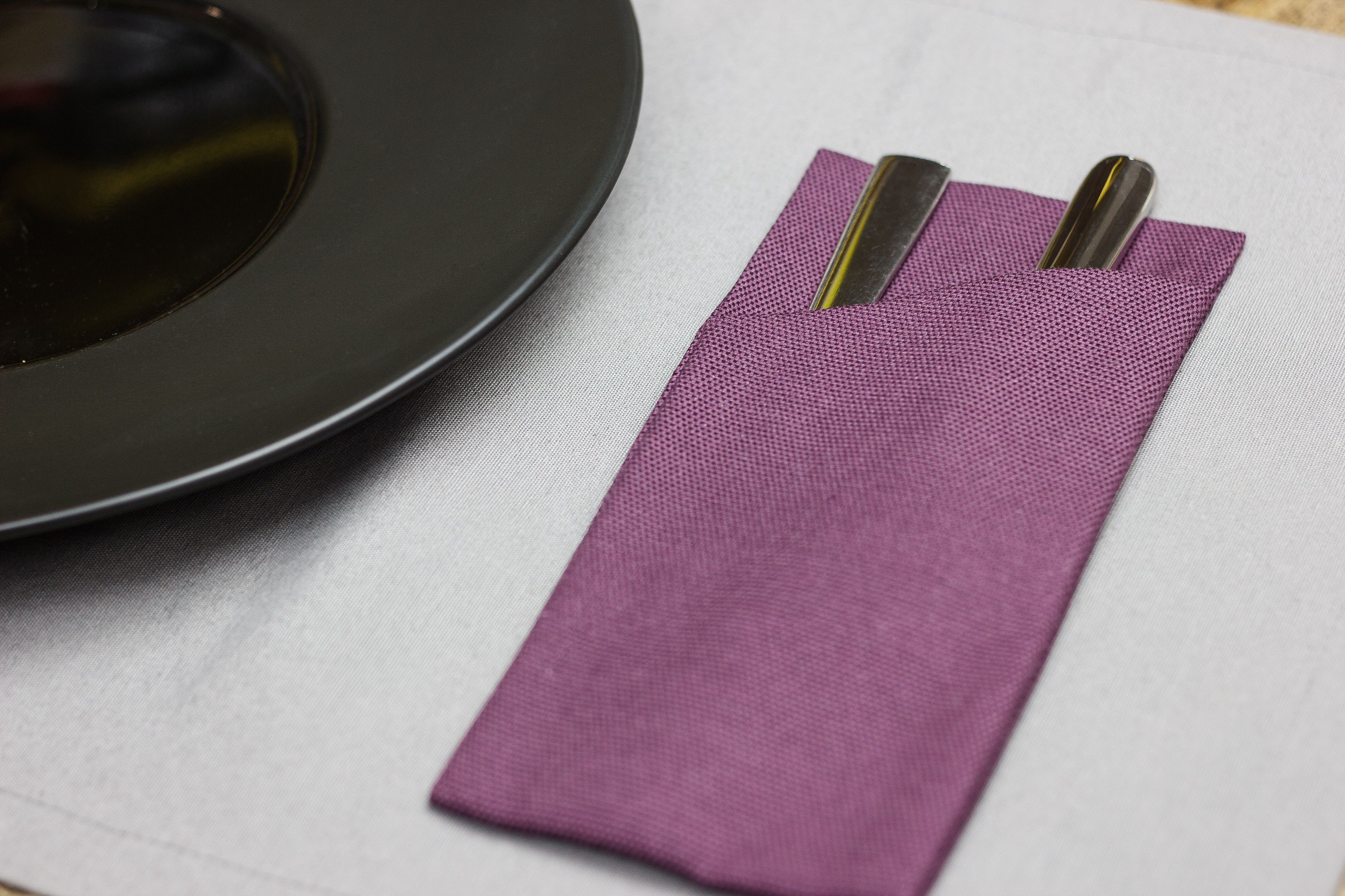 Можно изготовить из любой ткани, добавить необходимое количество карманов и подобрать размер под диаметр ваших тарелок. Вышивку возможно нанести на любом месте.
